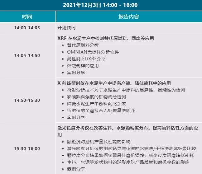為了解答這些水泥企業關心的問題,馬爾文帕納科將于12月3日(周五)舉辦《先進分析技術助力水泥企業低碳生產》為主題的網絡研討會,屆時將由資深應用工程師介紹最新的XRF、XRD技術在應對水泥行業低碳生產清潔原燃材料所需的分析解決方案,以及馬爾文帕納科激光粒度分析技術如何確保水泥的質量和強度,相比傳統的干篩/水篩法又有何優勢呢?一堂生動的講座從分析技術角度幫您解決問題,精彩內容不容錯過,期待您的關注和參與!