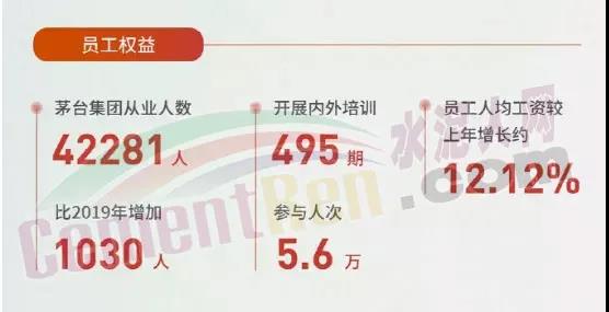 12月4日,貴州茅臺(tái)發(fā)布的《2020社會(huì)責(zé)任報(bào)告》提到,貴州茅臺(tái)集團(tuán)營(yíng)業(yè)收入1142億元,同比增長(zhǎng)13.9%;凈利潤(rùn)551億元,同比增長(zhǎng)16.8%。在員工權(quán)益方面,2020年貴州茅臺(tái)集團(tuán)從業(yè)人數(shù)42281人,較上年增加1030人,員工人均工資較上年增長(zhǎng)約12.12%。
