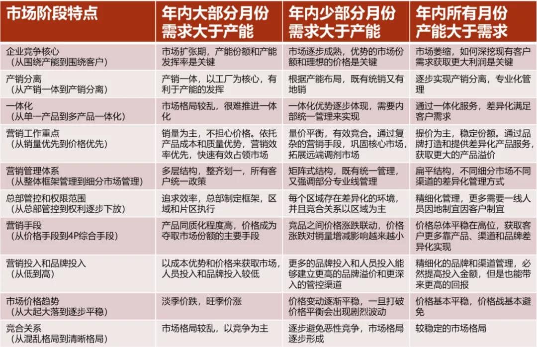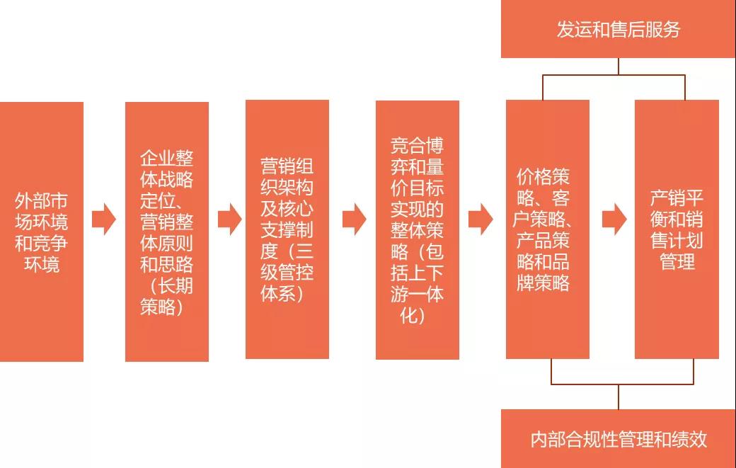 ●營銷戰術落地層面,包括4P方面的價格策略、客戶和渠道策略、產品策略以及品牌策略等,還有與工廠協作方面的產銷平衡和計劃管理等等。
