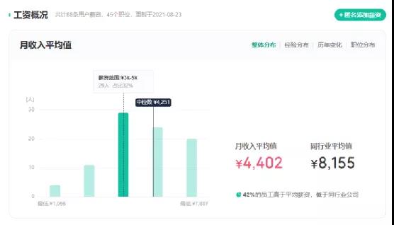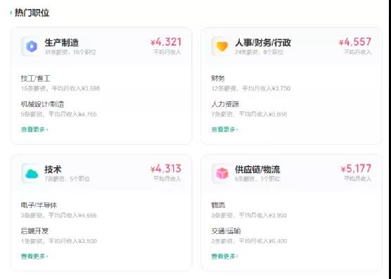 其中月薪最高7807元,最低1056元,熱門職位中生產(chǎn)制造平均月收入為4321元,供應(yīng)鏈/物流為5177元。擁有2年經(jīng)驗(yàn)的生產(chǎn)操作員,月薪7807元,無經(jīng)驗(yàn)的普工操作工月薪1500元。
