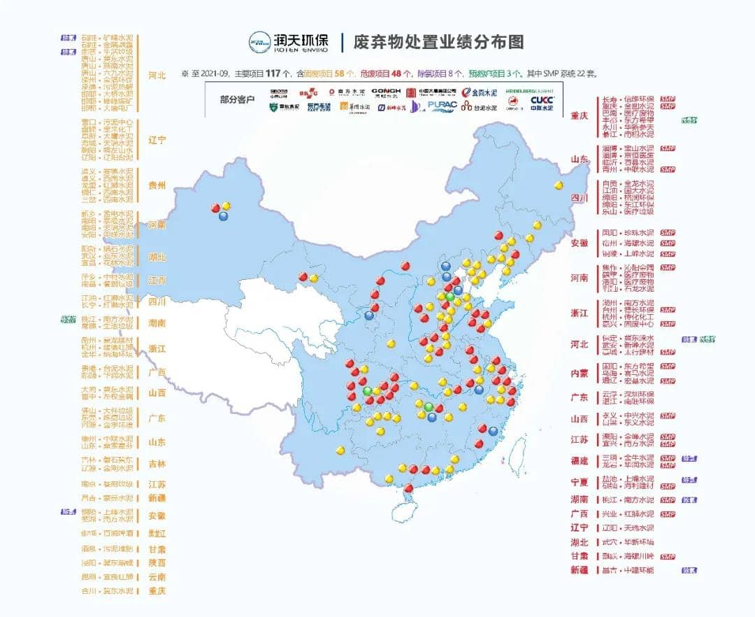 潤天環保目前已成為 中國建材、海螺水泥、金隅冀東、紅獅水泥、臺灣水泥、亞洲水泥、金圓水泥 等各大水泥集團的供應商。