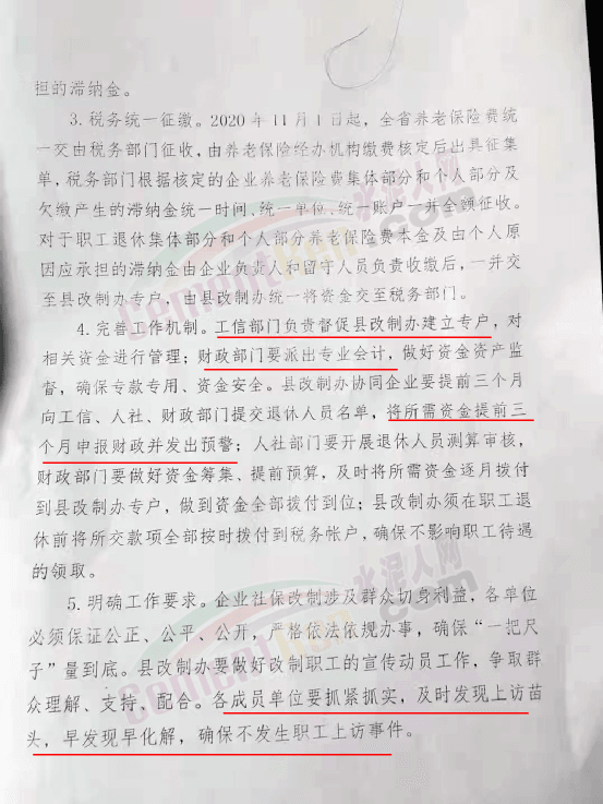 3、離廠后的職工長達十五六年無人繳納養老金,導致產生大量巨額滯納金。2018年開始,下崗職工不斷通過各種渠道表達訴求,國家、省市縣各級部門全部反映過訴求,總算答應免除滯納金。但退休職工仍然需要墊繳滯納金和本金,滯納金遲遲不退還;