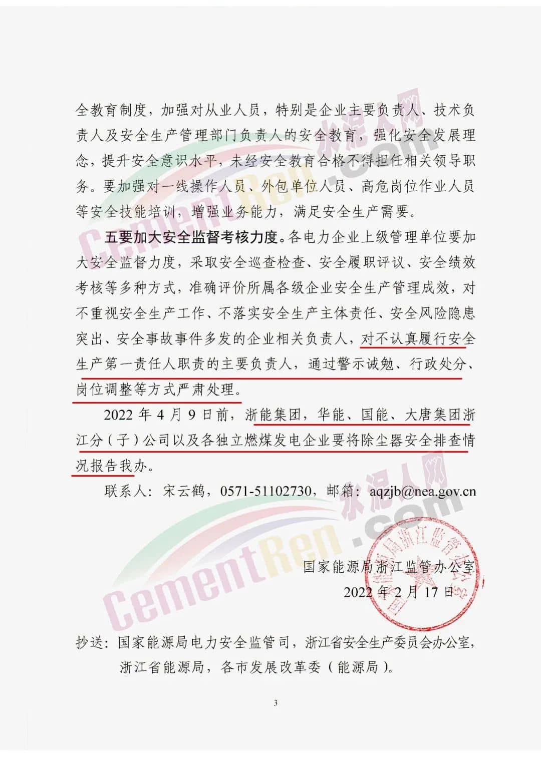 2022年4月9日前,浙能集團(tuán),華能、國(guó)能、大唐集團(tuán)浙江分(子)公司以及各獨(dú)立燃煤發(fā)電企業(yè)要將除塵器安全排查情況報(bào)告。