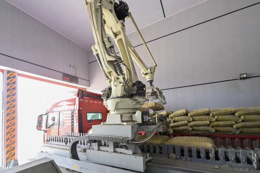 3月1日,位于新材料產(chǎn)業(yè)園的固原市賽馬新型建材有限公司內(nèi),經(jīng)過一系列智能生產(chǎn)工藝,最終由機(jī)器人有序“搬運(yùn)”“六盤山牌”水泥,裝車發(fā)往固原及周邊地區(qū)。