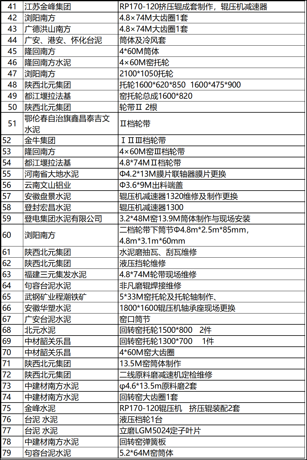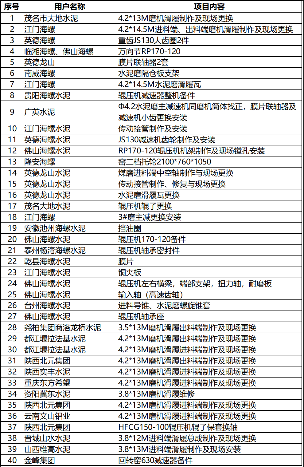 截至目前,超盛重工已經針對海螺茂名大地水泥有限公司、都江堰拉法基水泥有限公司、陜西堯柏水泥有限公司、陜煤集團北元化工水泥有限公司、海螺江門水泥有限公司、東方希望等水泥百強企業進行了技改,在保證水泥企業正常生產運行的情況下,進一步幫助水泥企業創造更大的利潤空間。