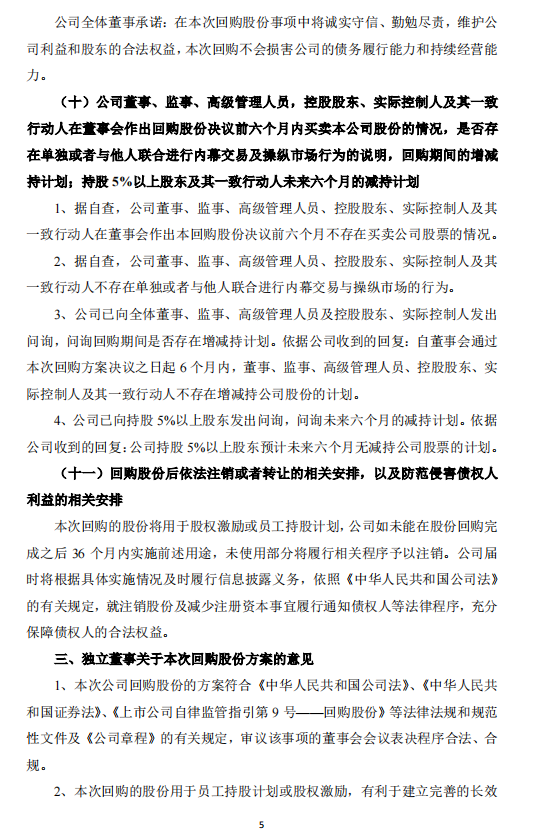 公司公告本次回購的股份將用于實施員工持股計劃或股權激勵,長效激勵約束機制的實施也將進一步提高團隊凝聚力和競爭力,助力公司長遠發展。