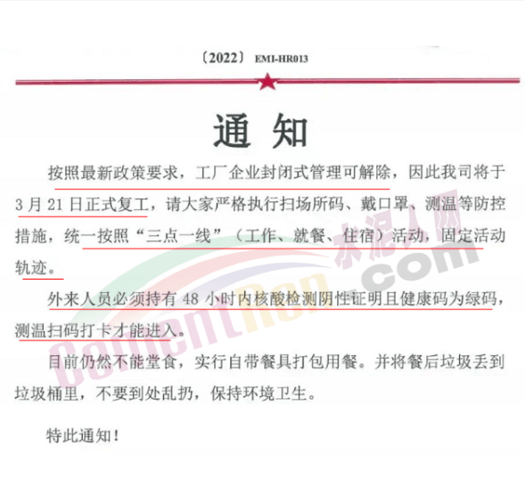 廣東深圳疫情防控指揮部發(fā)布通告稱,3月14日至20日,非城市保障型企業(yè)停止運(yùn)營或居家辦公,停止一切非必要流動、活動,全市全員進(jìn)行三輪核酸檢測。廣東東莞全面升級防控措施,發(fā)生本土疫情的鎮(zhèn)街(園區(qū)),所有企業(yè)一律停止生產(chǎn)活動;未發(fā)生本土疫情的,實(shí)行封閉式管理的產(chǎn)業(yè)園區(qū),在嚴(yán)格落實(shí)各項(xiàng)防疫措施的前提下維持基本生產(chǎn)。深莞兩市,除保障城市運(yùn)行及供港物資貨運(yùn)的交通外,全市公交、地鐵停運(yùn)。根據(jù)通告指示,許多倉儲物流企業(yè)暫停運(yùn)營。深圳市金運(yùn)達(dá)國際物流表示,自2022年3月14日起,深圳所有倉點(diǎn)暫停辦理進(jìn)出倉業(yè)務(wù);城市國際物流發(fā)布通知稱,東莞集運(yùn)倉庫自2022年3月16日起,工廠停產(chǎn)停工,在此期間,倉庫暫停收貨、裝箱發(fā)貨。汕頭萬象城通知暫停營業(yè),恢復(fù)營業(yè)時間另行通知。南澳大橋臨時交通管制……