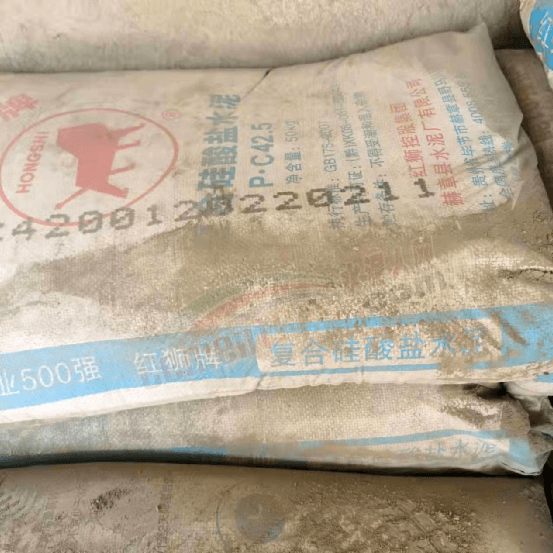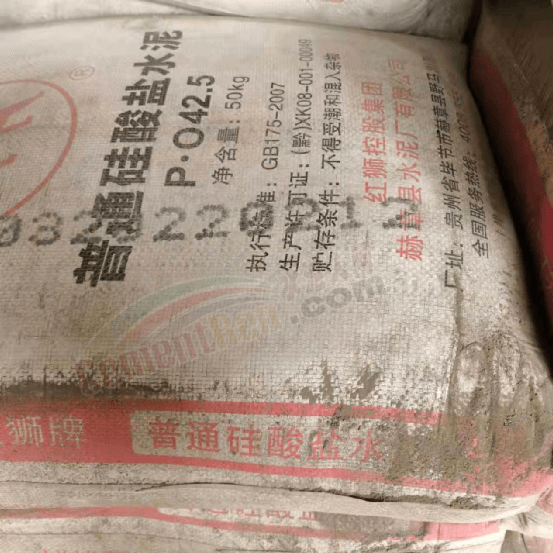 從照片上可見水泥包裝上標稱生產企業為紅獅控股集團赫章縣水泥廠有限公司;水泥標號分別為P.O42.5普通硅酸鹽水泥、復合硅酸鹽水泥P.C42.5;噴碼日期為2022年2月。另有一批砌筑水泥生產標號日期顯示為2022年1月。凈含量均標稱為50kg,包裝袋上印刷的生產許可證為(黔)XK08-001-00049。