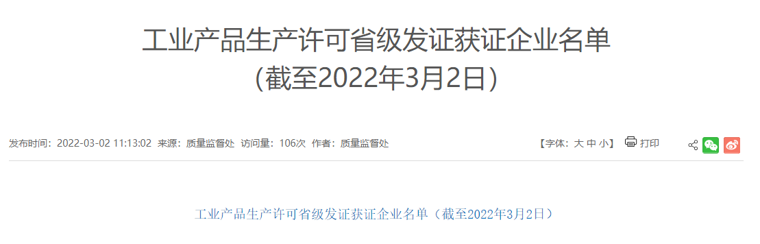 河北市場監管局工業品生產許可證數據查詢顯示,河北承大環保科技有限公司生產許可證編號為(冀)XK08-001-00056,生產地址位于河北省承德市興隆縣北營房鎮北營房村。發證日期為2021年12月2日,生產許可證有效期至2027年1月16日。