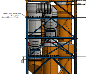 將預(yù)熱器現(xiàn)有的雙旋風(fēng)筒更換成兩個(gè)KHD最新一代的C1高效旋風(fēng)筒,以適應(yīng)熟料提產(chǎn)后的要求,改造后示意圖見圖4。