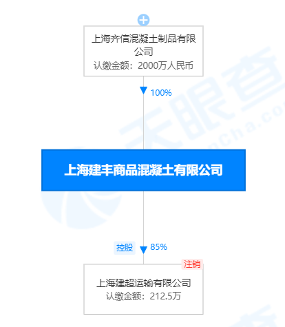 據天眼查查詢結果顯示,上海建豐商品混凝土有限公司成立于1995年,注冊資本2000萬人民幣,是上海齊信混凝土制品有限公司的子公司,主要經營范圍為商品混凝土生產,混凝土構件、建筑機械、建筑五金、電器的銷售。
