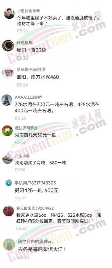 廣東水泥一降再降太嚇人了,如今農村人紛紛提前準備蓋房了。廣東的水泥在今年3月25日大降價,32.5只要390元/噸,42.5水泥560元/噸。去年價格較高時42.5水泥賣1060元/噸,32.5水泥賣1000元/噸。年后水泥價格一降再降,到現(xiàn)在已經(jīng)降了600元/噸左右。