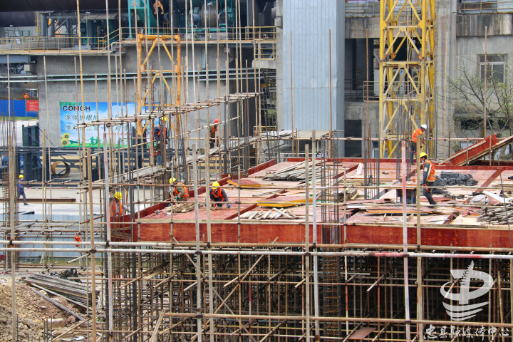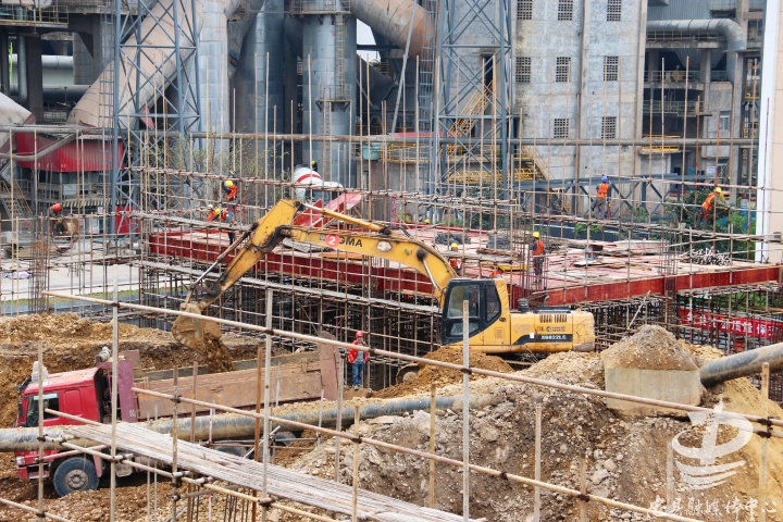 3月29日,在重慶海螺利用水泥窯資源化處置廚余垃圾項(xiàng)目施工現(xiàn)場(chǎng),數(shù)十名工人正在場(chǎng)地施工。