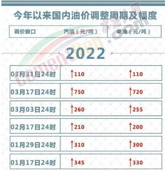 受國際原油持續上漲的影響,2022年國內汽柴油價格達到八年以來的最高點。按照“10個工作日”油價調整的規律,3月31日24時將開始3月最后一次油價調整,完成2022年油價“第6次”上漲。