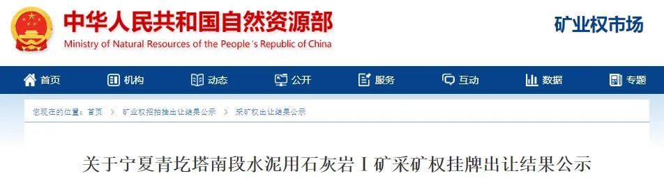 近日,自然資源部發布了關于寧夏青圪塔南段水泥用石灰巖Ⅰ礦采礦權掛牌出讓結果公示。中國水泥網從公示中得知寧夏豪龍建材以1.25億元競得了該礦山采礦權。