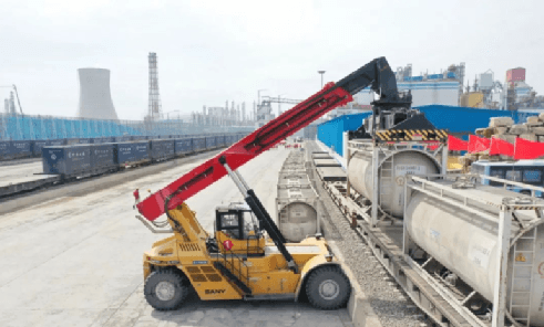2021年6月22日,由92個集裝箱組成,滿載1472噸包頭冀東公司熟料的集裝箱專列在白云鄂博站成功首發。冀東水泥在回復投資者提問時曾提到,內蒙古區域公轉鐵專列的熟料發往本公司控股子公司天津振興環保公司。
