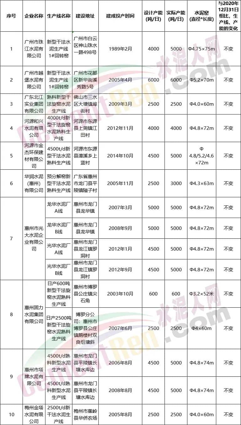 4月20日,廣東省工業和信息化廳公布了《2021年廣東省水泥