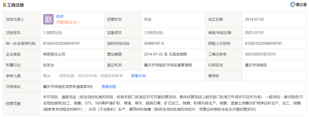 企業工商注冊信息顯示,重慶市多吉再生資源有限公司成立于2014年07月02日,注冊地位于重慶市涪陵區龍橋街道袁家8社,法定代表人為趙波。
