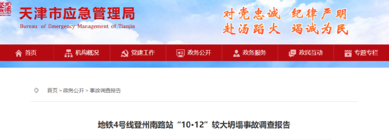 日前,天津市應急管理局發布《地鐵4號線登州南路站“10·12”較大坍塌事故調查報告》提到,2021年10月12日天津地鐵4號線南段的一處在建工程發生坍塌導致4人死亡的事故。