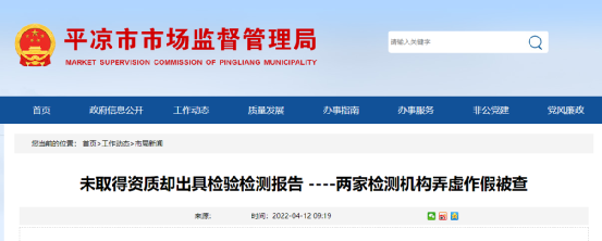 甘肅省平涼市市場監管局消息,兩家檢測機構未取得資質卻出具檢驗檢測報告被查。