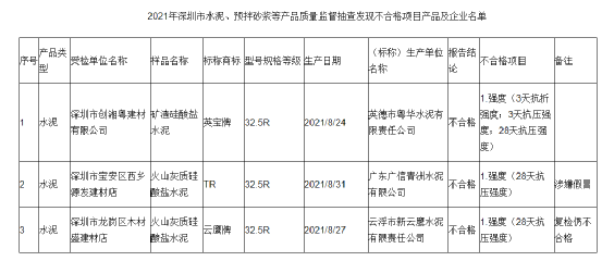 一行業人士對水泥人網表示:市場隨機抽查最具代表性、真實性。據水泥人網了解,近兩年各省市自治區市場監管部局多采取了市場抽檢的方式。日前,深圳市市場監督管理局通報了水泥產品質量監督抽查結果,受檢單位均為建材商店。抽檢發現3批次水泥強度不合格,其中一家復檢仍不合格,另一家涉嫌假冒。