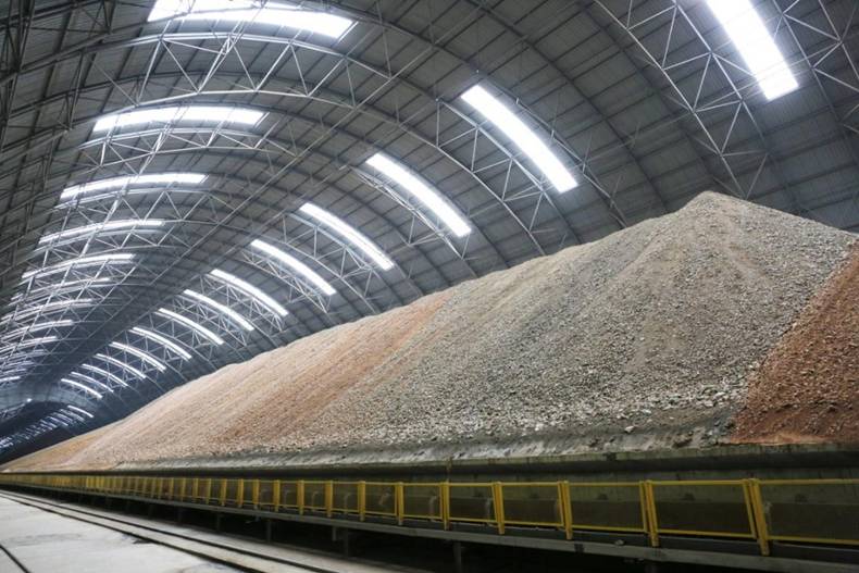 從礦山拉回的顆粒狀石灰石以及各種爐渣和硅鋁材料,經(jīng) 生產(chǎn)部質(zhì)量驗收班驗收后堆放到原料堆棚里,不同顏色的礦石讓堆棚顯得不那么單調(diào)。