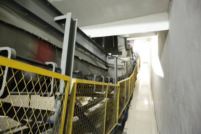 原料配料班組通過中子在線分析后配比,經(jīng)輥壓機粉磨制成生料粉。