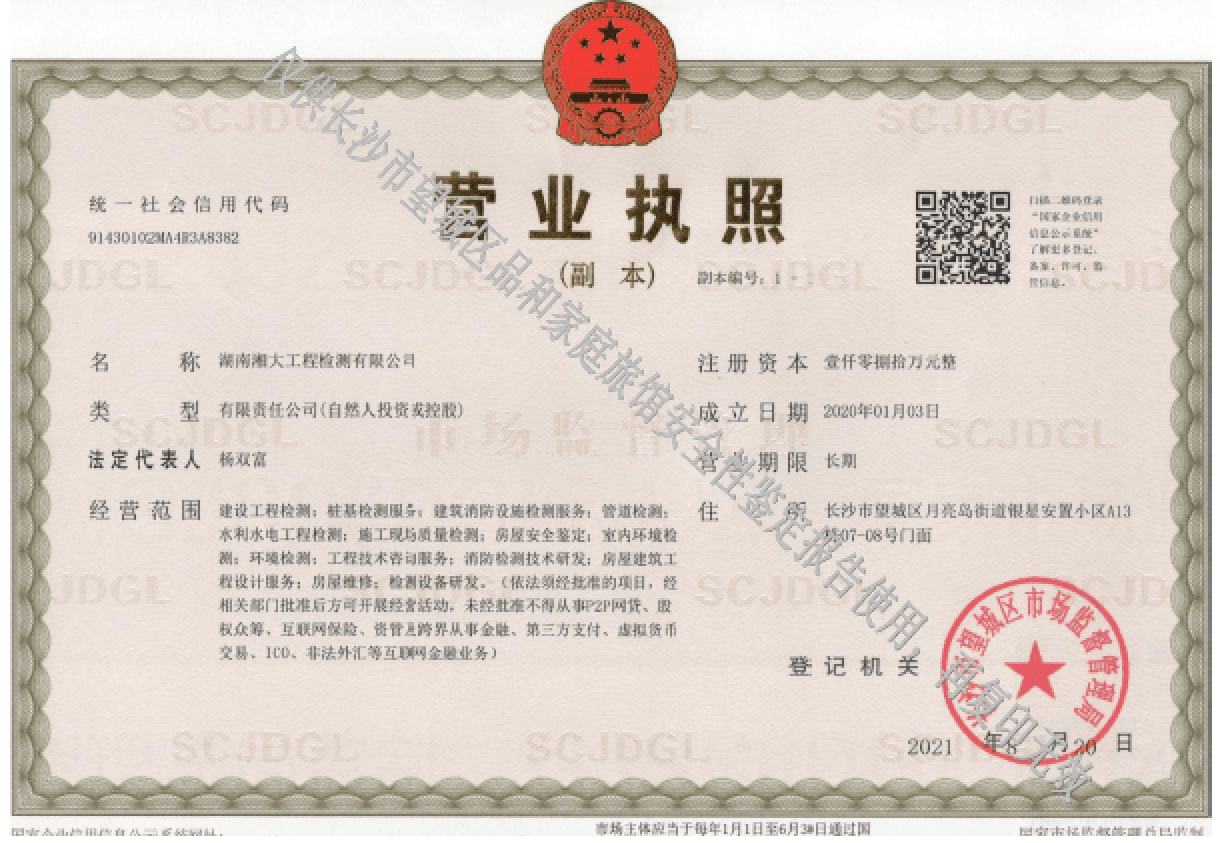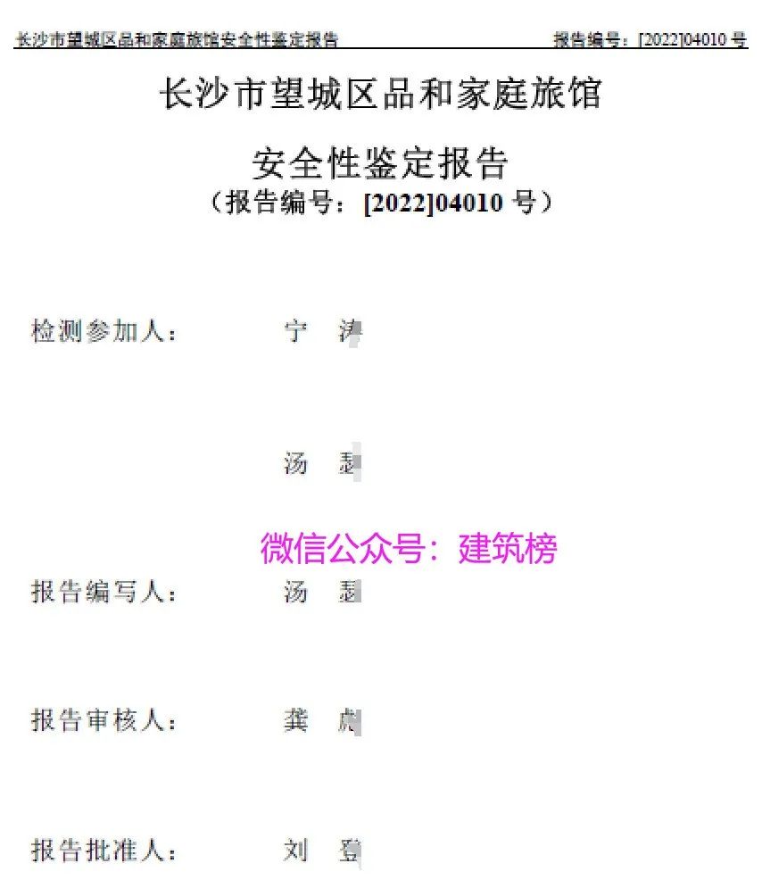 經(jīng)查,2022年4月13日,湖南湘大工程檢測有限公司(法人代表:譚某,公司性質(zhì):私營,注冊地:望城區(qū)月亮島街道)對該自建房家庭旅館(4、5、6樓)進(jìn)行房屋安全鑒定后出具虛假房屋安全鑒定報告,公司法人代表譚某及技術(shù)人員寧某、湯某、劉某、龔某等5人涉嫌提供虛假證明文件罪。