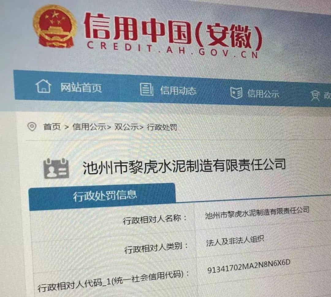 池州市黎虎水泥制造有限責(zé)任公司,法定代表人為王印璽,該公司在未取得施工許可手續(xù)情況下,擅自施工,此違法違規(guī)建設(shè)工廠,被該市貴池區(qū)城市管理行政執(zhí)法局處罰。