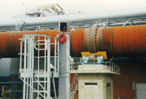 傳統(tǒng)的回轉窯是大型鋼管外殼,直徑數(shù)米,長度可達100米(當然,也有更大的,長度超過100米的回轉窯并不少見)。為了保護鋼材不受高溫的影響,每個窯爐都用耐火磚做內襯,這種材料通常是各種陶瓷的混合物。