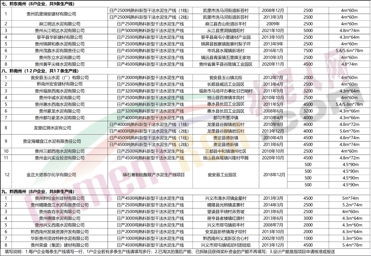 從貴州省工信廳發(fā)布的《2021年度水泥熟料生產(chǎn)線(xiàn)清單》可見(jiàn)貴州省內(nèi)共有水泥熟料生產(chǎn)線(xiàn)94條,合計(jì)產(chǎn)能8449.2萬(wàn)噸。