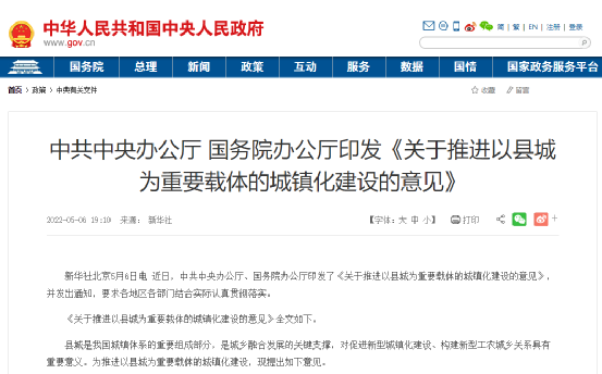 近日,中共中央辦公廳、國務院辦公廳印發了《關于推進以縣城為重要載體的城鎮化建設的意見》,并發出通知,要求各地區各部門結合實際認真貫徹落實。