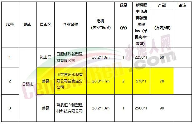 來源:山東省發改委《山東省3.2m及以下水泥粉磨裝置清單(第二批)》