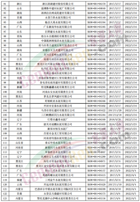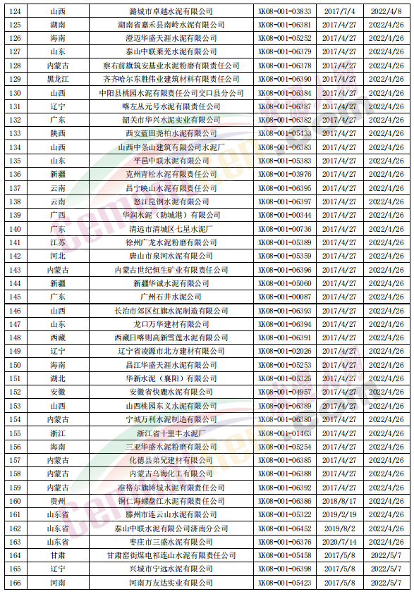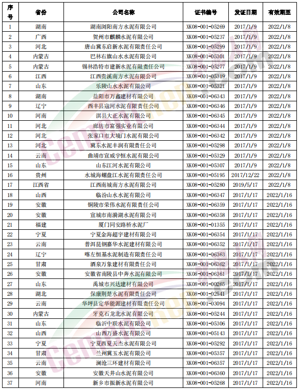 據查詢,河北、山東、廣東、浙江、福建、貴州六省市場監管局省級發證水泥行業生產許可證中,有15家企業生產許可證將于今年內到期。