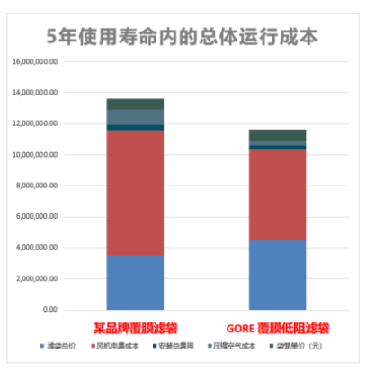 普通的濾袋通常是 24個月更換一次,戈爾的低阻濾袋按五年(60個月)壽命計算,理論上看可節(jié)省近2倍的成本。