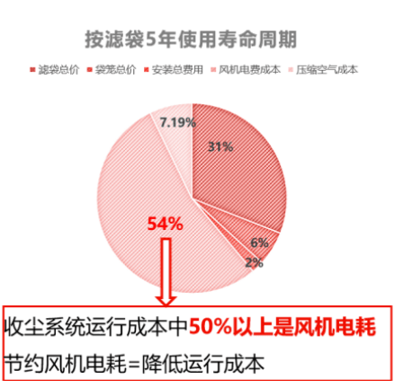 省下的就是賺到的,僅降低壓差一項就為企業(yè)節(jié)省了5000萬/年的費用。再加上更換濾袋需要采購新濾袋的成本,袋籠成本,安裝費用、更換濾袋所帶來的易損件費用等。對于整條生產線而言這部分費用并不很高 ,但是經年累月,若經常更換濾袋,所帶來的支出增加就可能導致企業(yè)成本上漲,在價格戰(zhàn)中丟失“市場份額”。