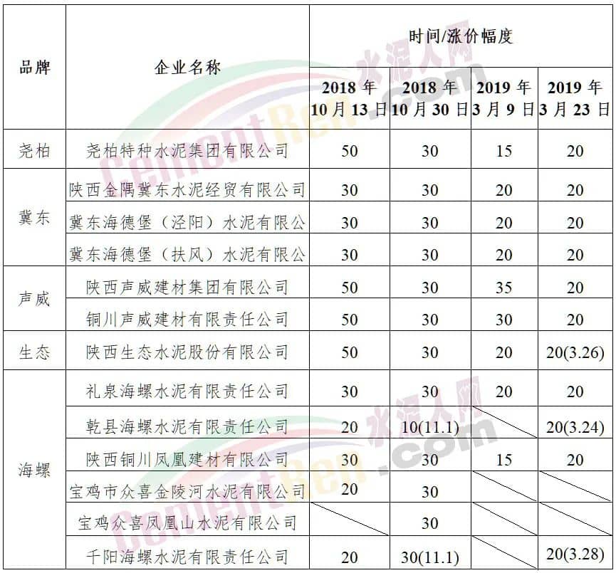 2018年10月11日,聲威水泥有關負責人召集,堯柏水泥有關負責人、冀東水泥有關負責人、聲威水泥有關負責人、海螺水泥有關負責人、生態水泥有關負責人在西安市鳳城八路附近茶秀商談價格調整事宜,最終參加人員一致達成共識:從10月13日起各品種水泥上調50元/噸。