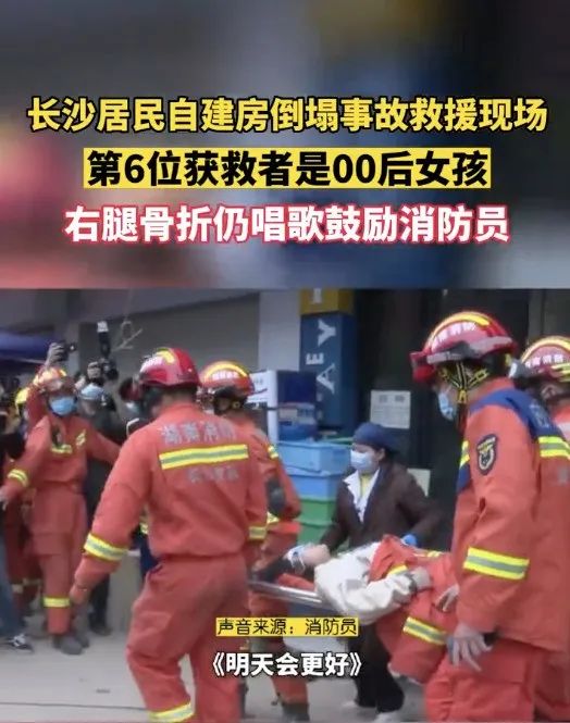 為了給救援人員鼓勁,輕聲唱起《明天會(huì)更好》。