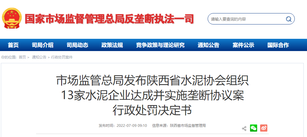 近來,陜西13家水泥企業達成并實施壟斷協議案成為整個行業關注的焦點。