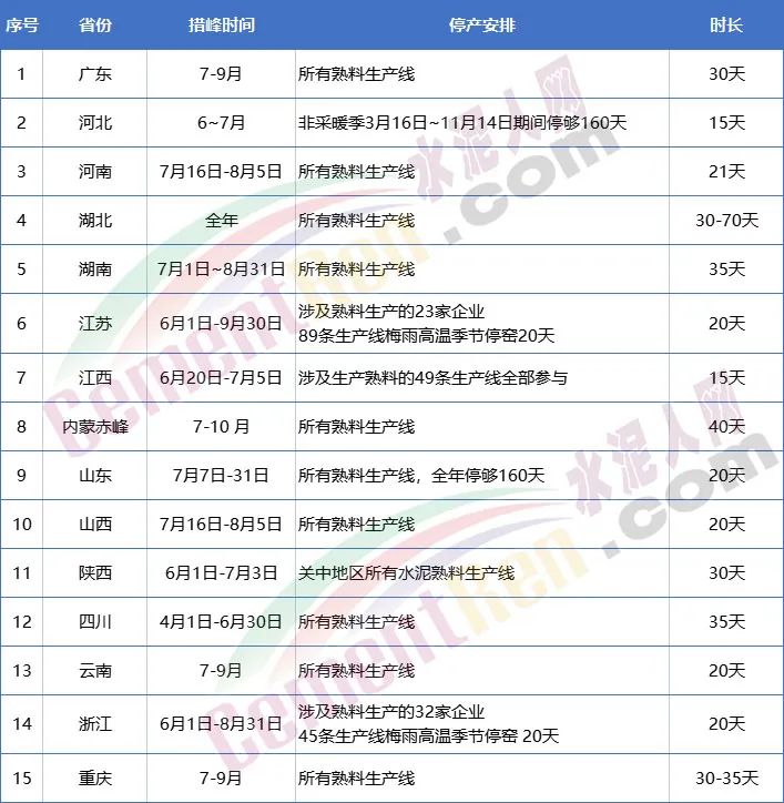 截至目前已經(jīng)有十多個地區(qū)域發(fā)布了夏季錯峰生產(chǎn)通知,要求區(qū)域內(nèi)熟料企業(yè)于近期開啟錯峰生產(chǎn)。
