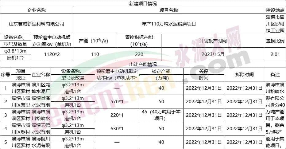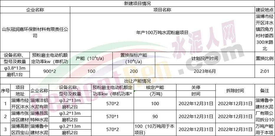 日前,山東省工信廳發布《關于8家企業新建水泥粉磨項目產能置換情況公示》稱,根據相關文件規定,8家企業制定了產能置換方案。置換比例全部為2:1,新建線產能規模為90~120萬噸/年,擬投產日期從2022年12月至2024年6月,合計產能達810萬噸/年,詳情如下: