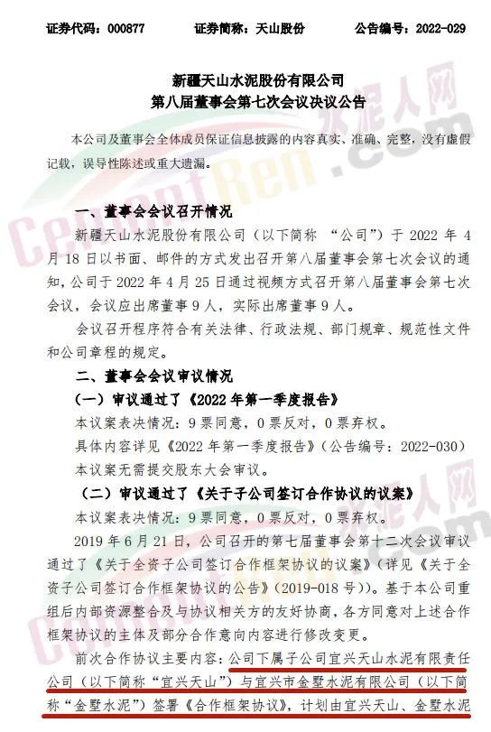 據水泥人網此前消息,4月25日天山股份發布第八屆董事會第七次會議決議公告,審議通過了《關于子公司簽訂合作協議的議案》。