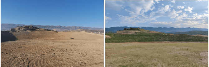 內蒙烏海能源老石旦煤礦Ⅲ號矸石山生態修復應用研究與示范施工前后對比圖