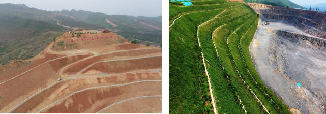 嵐溝石灰巖露采邊坡礦植被恢復施工前后對比圖