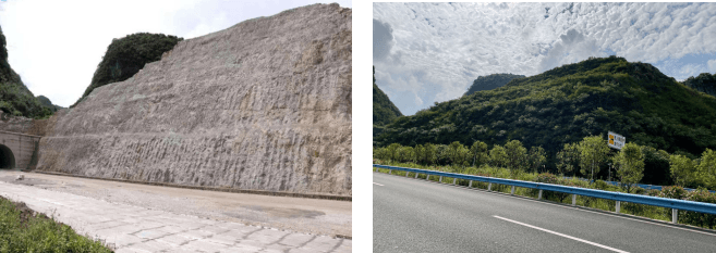 貴州平羅高速公路邊坡植被恢復施工前后對比圖