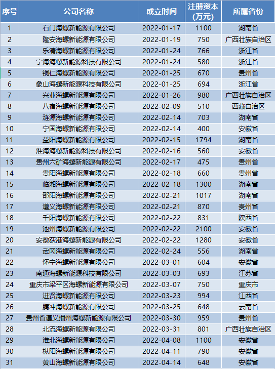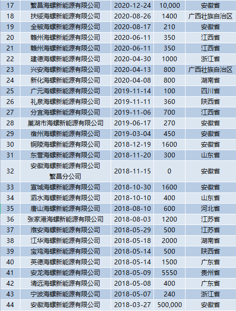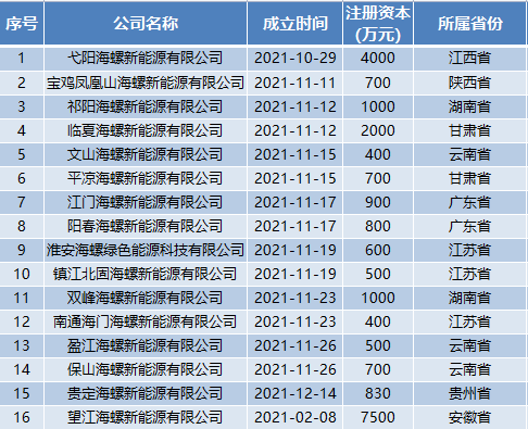 2018年-2021年,海螺新能源獨立出資設立了44家新能源公司。海螺新能源主營業(yè)務包括光伏發(fā)電、風力發(fā)電、儲能系統(tǒng)領域內的技術開發(fā)、技術服務,電力項目的建設、運營和管理等。