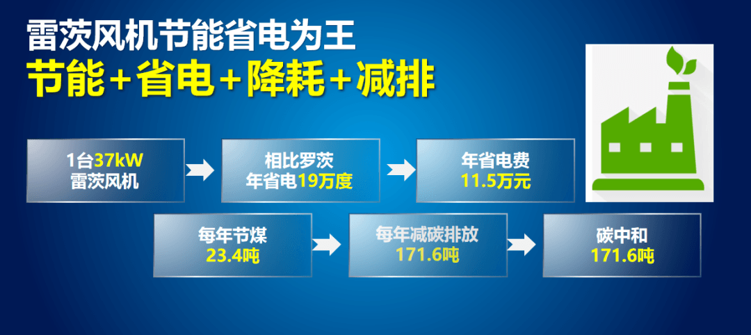 從經(jīng)濟(jì)效益看,用雷茨風(fēng)機(jī)取代傳統(tǒng)羅茨風(fēng)機(jī)為企業(yè)節(jié)約大量成本。例如一臺(tái)37kW的雷茨風(fēng)機(jī),相比羅茨風(fēng)機(jī)每年大約可以省電19萬(wàn)度,省電費(fèi)約11.5萬(wàn)元,減碳排放約172噸。雷茨成為“碳達(dá)峰”時(shí)代名副其實(shí)的節(jié)能小標(biāo)兵。