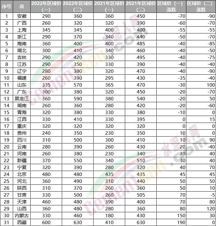分區域來看,同比上年同期,安徽、廣西、上海、浙江、海南、湖北、吉林、江蘇、遼寧、福建、山東、廣東、黑龍江、湖南、青海、云南、甘肅等十七個省市自治區水泥價格均有不同幅度的下跌,其中安徽淮南主要品牌企業水泥價格下跌90元/噸。