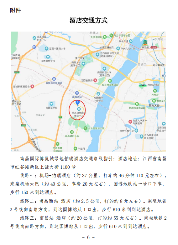 南昌國際博覽城綠地鉑瑞酒店交通路線指引:酒店地址:江西省南昌市紅谷灘新區上饒大街1100號