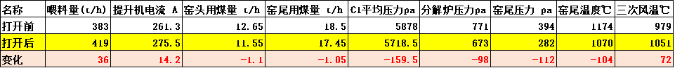 應用于水泥熟料燒成系統的“精準平衡操作技術”是我們國家在世界水泥行業的一項原創技術。自從問世以來,很多工廠都在嘗試把三次風閥門全開運行,但是由于系統的工藝結構不同以及大家學習理解和掌握的的深度不同。各種生產線提升效果也不同。繼浙江、重慶、山東、河南、廣東多個水泥工廠把三次風管打開運行取得了明顯的提產﹑降耗﹑降阻效果之后,四川的一家工廠在打開運行后,也產生了非常明顯的效果。更因為煤價的持續增長,使其一項技術措施就產生了4000多萬元的效益。下面是該企業打開三次風管閥門前后系統運行的兩個頁面實況。